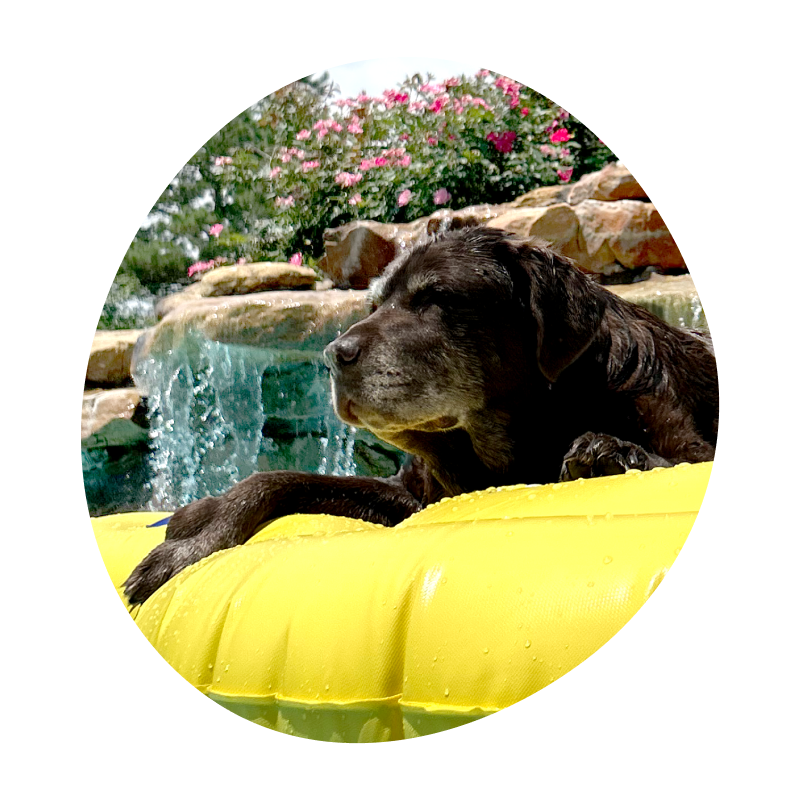 Dottie’s hobbies include diving for toys in the pool and naps on the couch.