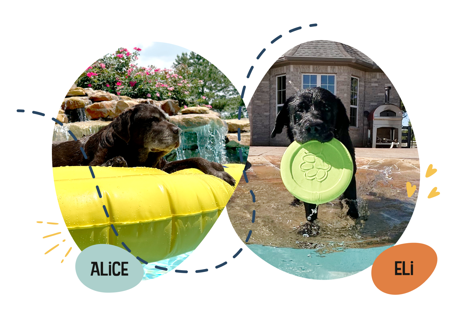 Our brand name was inspired by two very special dogs. Alice is our easygoing senior who likes to chill and enjoy good food, while Eli is our young and energetic pup that likes to party!